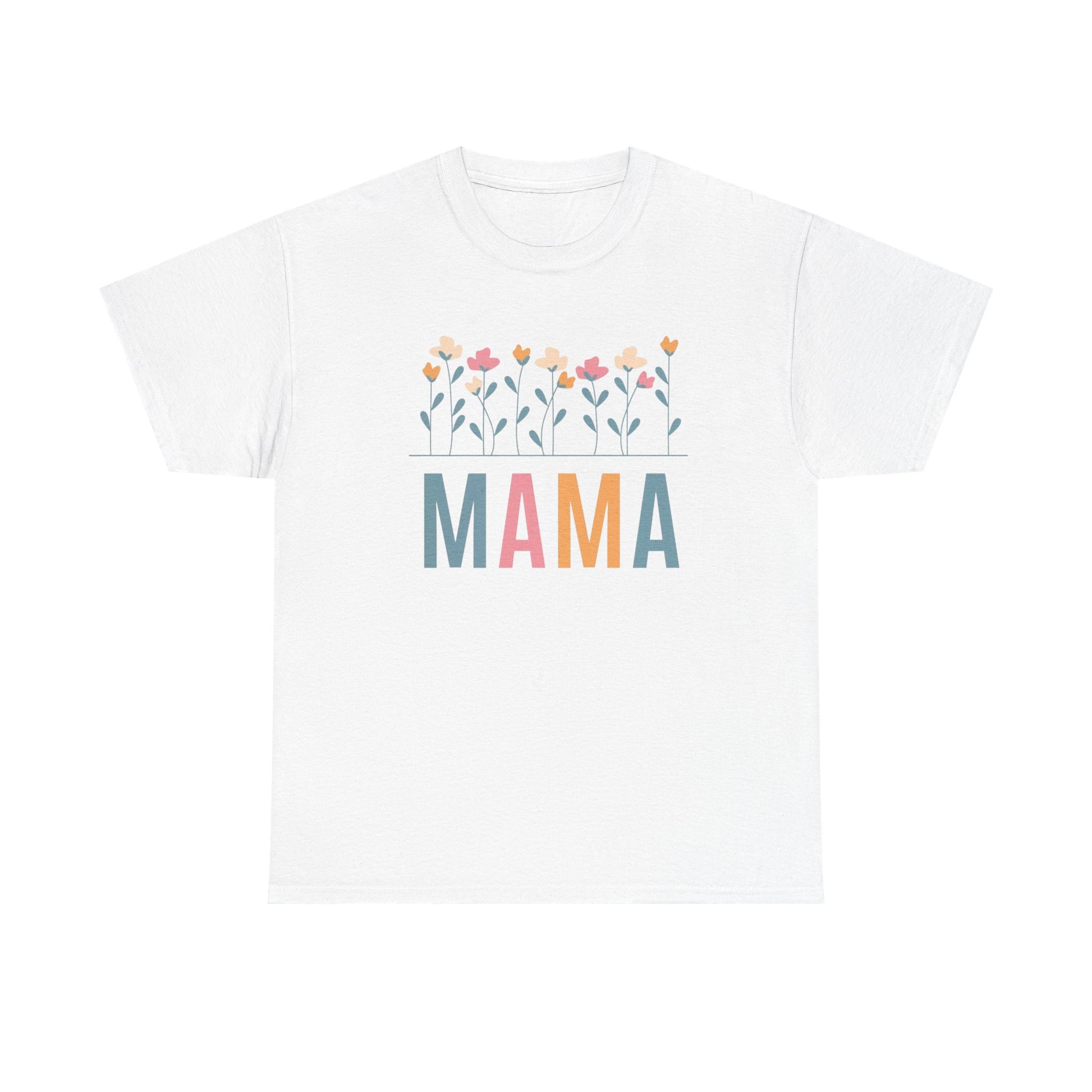 Soft, simple, and quietly joyful — this tee reads MAMA in gentle, muted colors beneath a row of hand-drawn wildflowers.